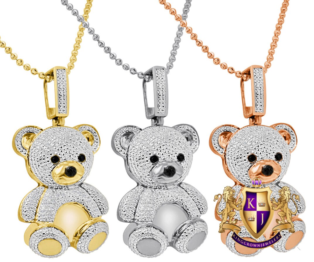 Real Genuine Diamond 15 Grams Teddy Bear Pendant 10k Gold Etsy Uk